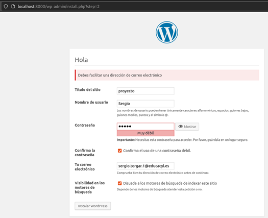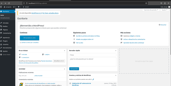 Por lo que, ahora ya se puede acceder al servicio de WordPress realizanndo un port-forward al servicio que se ha creado con la instalación del chart: