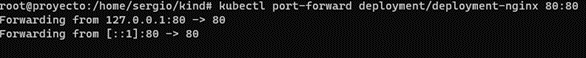 Y que es posible acceder en este caso al servicio de nginx con el comando kubectl port-forward: