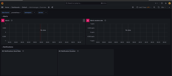 Al no poderse exponer por puertos del host principal grafana no puede realizar los análisis apropiados pero se pueden ver los datos que mostraría si todo funcionase correctamente: