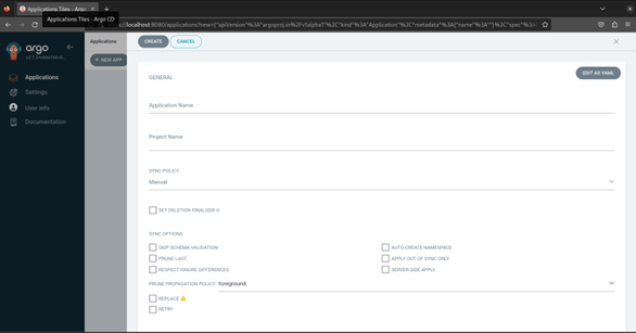 Y ahora dentro de la aplicación de ArgoCD como se dejó en el punto 3.4.5. seleccionar + NEW APP: