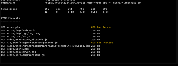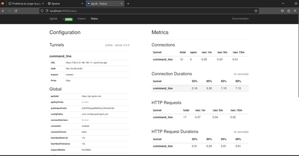 También desde el puerto 4040 se puede acceder a un panel donde se muestra más información sobre ngrok: