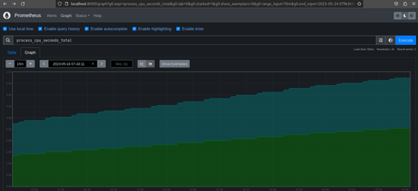 En este caso se estan mostrando los procesos de CPU por segundo de cada servicio, por algún problema (al cual no se le ha encontrado solución) solo se muestran los servicios asociados a prometheus. Para exponer grafana se utiliza: