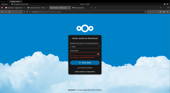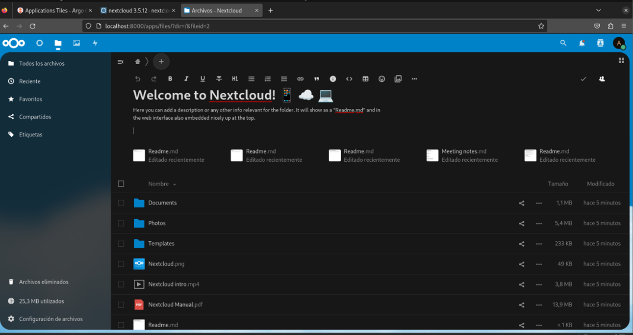 Haciendo un port-forward a la aplicación de NextCloud se puede acceder desde fuera del cluster a la misma: