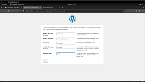 En el navegador accediendo a localhost desde la máquina virtual se puede comprobar que todo funciona correctamente: